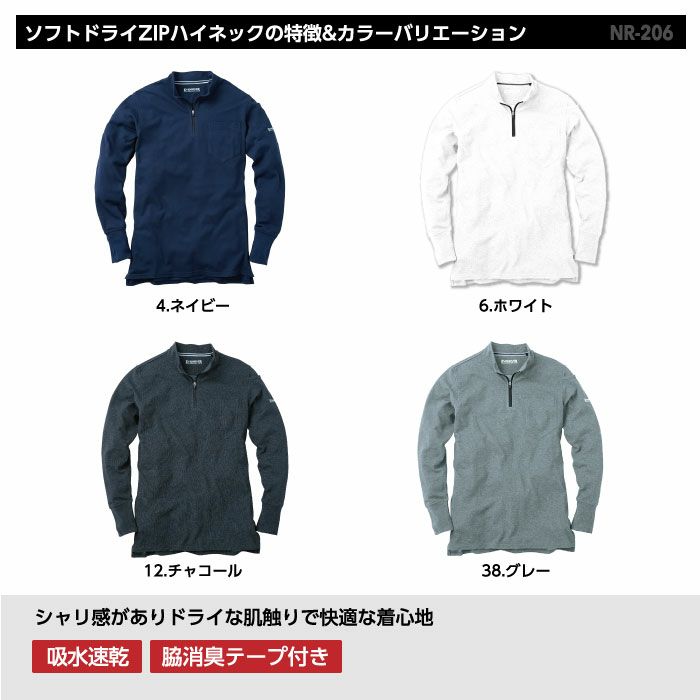 他の画像を見る シャリ感がありドライな肌触りで快適な着心地 イーブンリバー ソフトドライ ZIPハイネックシャツ(長袖)NR-206 オールシーズン 作業着 作業服 本体価格 ¥ 2,530 税込 在庫切れ カートに入れる お気に入りに登録する