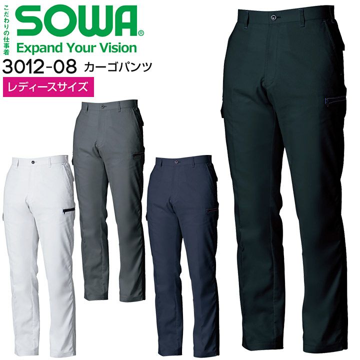 カーゴパンツ SOWA 3012-08 ストレッチ 制電 消臭 ズボン レディース 秋冬 作業服 作業着 桑和 ライトフィックス 東レ【レディースサイズ】