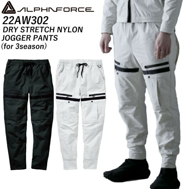 アルト 22AW302 ジョガーパンツ ドライストレッチ ナイロン 春秋冬 ストレッチ 軽量 多収納 パンツ カーゴ アルファフォース ALPHAFORCE アルトコーポレーション メンズ レディース 男女兼用 作業服 作業着 ブラック グレー