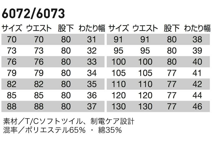 他の画像を見る 高品質な日本製T/Cソフトツイル素材 豊富なカラーバリエーション 製品制電JIS T8118適合品【大きいサイズ有】 バートル パンツ 6073 秋冬 ズボン 作業服 作業着 スラックス BURTLE 本体価格 ¥ 3,905 税込 カートに入れる お気に入りに登録する