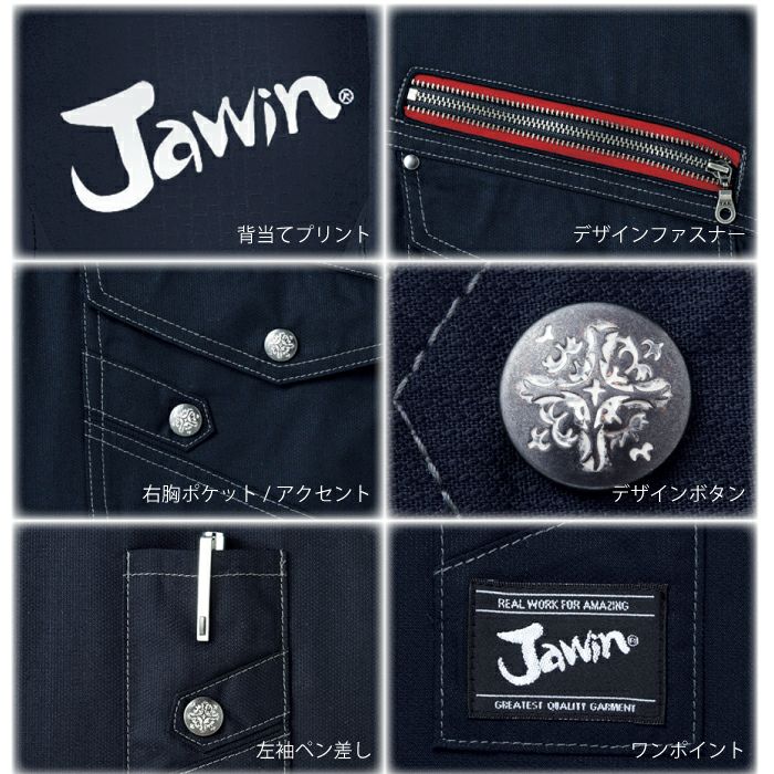 他の画像を見る アシンメトリーデザインとツインファスナーがハード感を演出。 ジャウィン 長袖シャツ 52304【秋冬】 Jawin 自重堂 作業着 作業服 本体価格 ¥ 4,180 税込 カートに入れる お気に入りに登録する