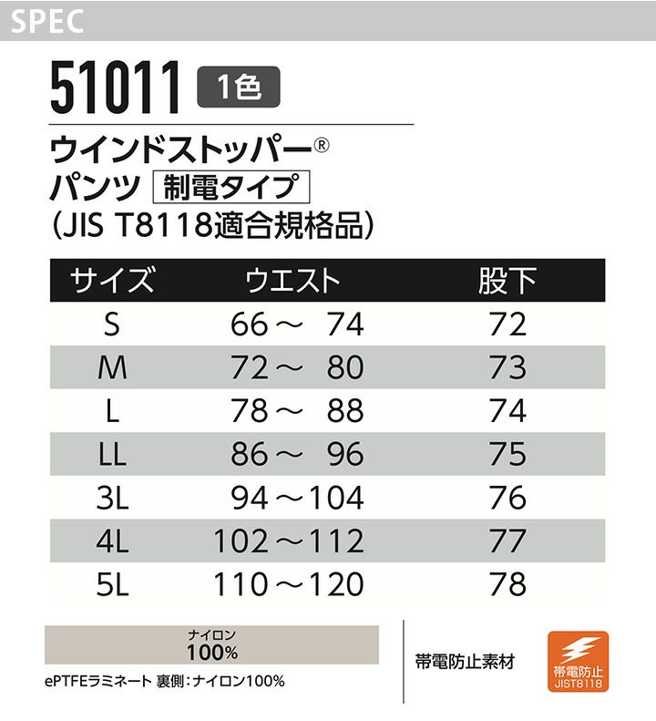 他の画像を見る 風をブロック 透湿性をキープ。保温性にも優れているため、過酷な条件下でも冷えることなく、常に暖かくいられます。 ゴア ウインドストッパーパンツ 制電タイプ 旭蝶 51011 メンズ ズボン JIS T8118適合規格品 防風 撥水 アウトドア 作業着 作業服 旭蝶【S-LL】 本体価格 ¥ 7,260 税込 在庫切れ カートに入れる お気に入りに登録する