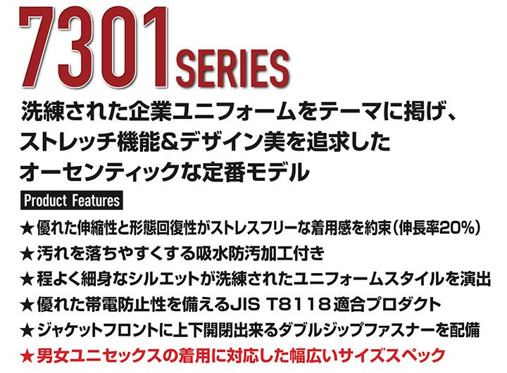 他の画像を見る 演練された企業ユニフォームをテーマに掲げ、ストレッチ機能&デザイン美を追求したオーセンティックな定番モデル。 バートル ジャケット 7301 長袖 秋冬 ストレッチ 制電 吸水防汚 男女兼用 メンズ レディース ブルゾン ジャンパー 作業服 作業着 BURTLE 2021-2022AW 大きいサイズ 【S-5L】 本体価格 ¥ 3,850 税込 カートに入れる お気に入りに登録する