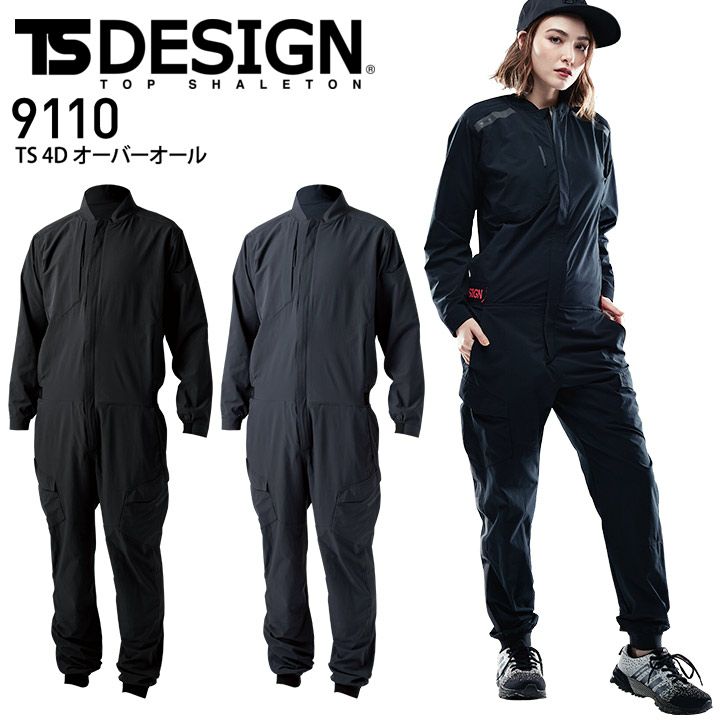 TS-DESIGN TS 4D オーバーオール 9110 男女兼用 ストレッチ 吸汗速乾 形態安定 反射 帯電防止 軽量 つなぎ 作業着 作業服 藤和【SS-LL】