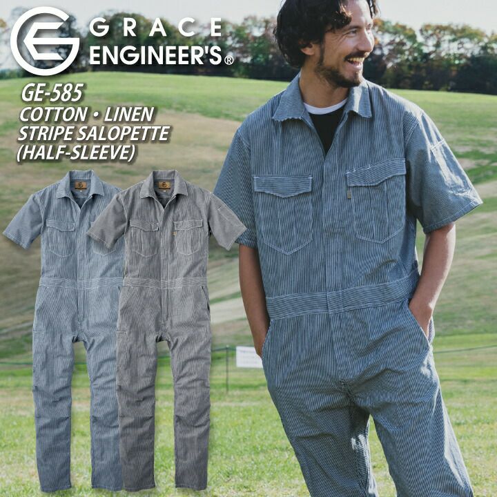 GRACE ENGINEER'S GE-585 綿麻ストライプ半袖ツナギ エスケープロダクト