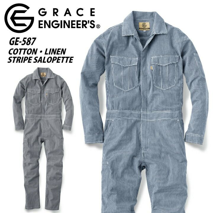 GRACE ENGINEER'S GE-587 綿麻ストライプ長袖ツナギ エスケープロダクト