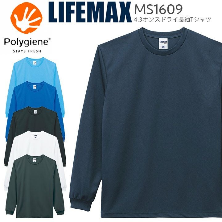 ドライ長袖Tシャツ MS1609 ボンマックス LIFEMAX 4.3OZ オールシーズン 無地 作業着 作業服 男女兼用 レディース メンズ 抗菌防臭 UVカット 紫外線対策 銀イオン トレーナー スウェット ユニフォーム 制服 汗 におい 悩み