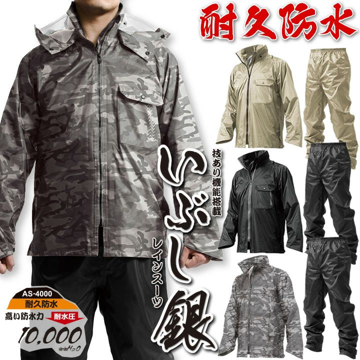 マック レインスーツ 上下セット いぶし銀 AS-4000 合羽 防水 防風 反射機能 作業用 作業着 レインウェア ジャケット パンツ アウトドア レジャー Makku