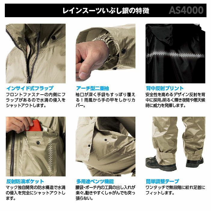 他の画像を見る 上下セット。耐久防水|考えぬかれた機能を体験 マック レインスーツ 上下セット いぶし銀 AS-4000 合羽 防水 防風 反射機能 作業用 作業着 レインウェア ジャケット パンツ アウトドア レジャー Makku 本体価格 ¥ 3,289 税込 在庫切れ カートに入れる お気に入りに登録する