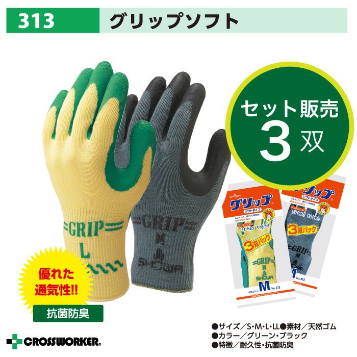 SHOWA 313 グリップ ソフトタイプ 3双パック 【滑り止め手袋・作業用】