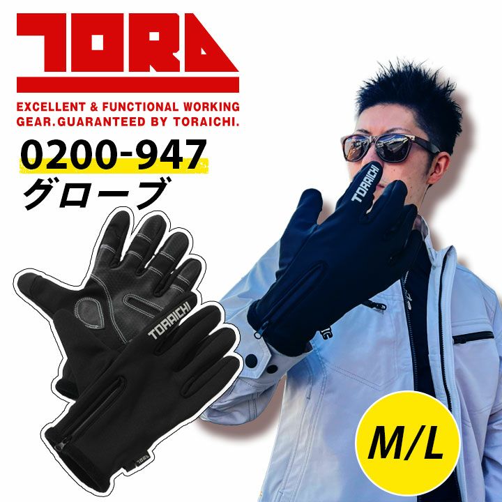 寅壱 グローブ 0200-947 メンズ ポリエステル 反射 ストレッチ 防風 撥水 保温 ブラック 黒 スポーツ アウトドア レジャー 作業