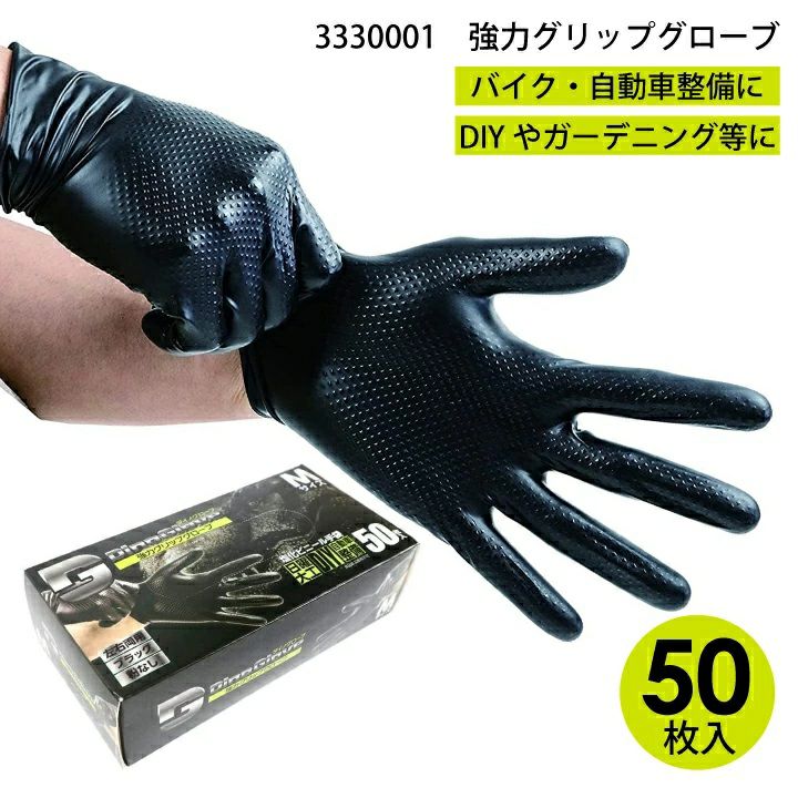 【返品交換不可】使い捨て手袋 作業用手袋 強力 ダイノグローブ 3330001 グリップグローブ メカニックグローブ パウダーフリー 粉無し M L LL 黒 ブラック フィット 左右両用 つばさ 自動車整備 オイル DIY 大工 ガーデニング 農業 農作業 作業 50枚入 作業着 作業服