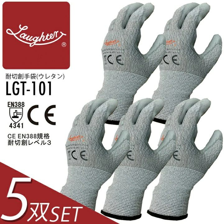 【5双セット】耐切創手袋 ウレタン 耐切創レベル3 ラフタージャパン LGT-101