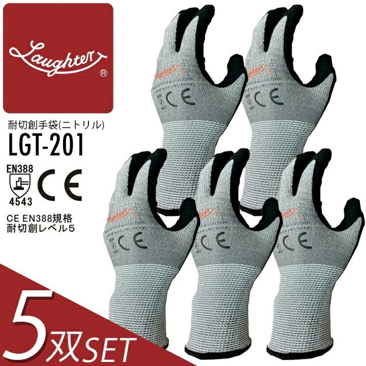 【5双セット】耐切創手袋 ニトリル 耐切創レベル5 ラフタージャパン LGT-201