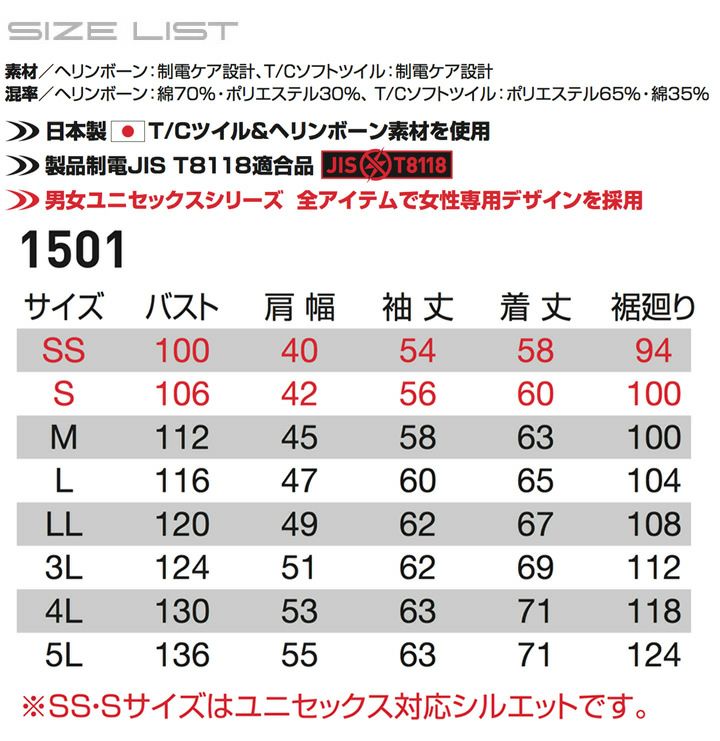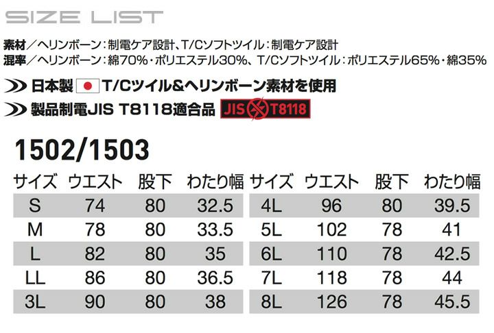 他の画像を見る 厳選した日本製ヘリンボーン素材使用。JIS T8118 帯電防止 上下セット バートル 長袖ジャケット 男女兼用 1501 カーゴパンツ 1502 メンズ レディース ジャンパー 秋冬 防寒対応 ブルゾン ズボン 制電 作業服 作業着 BURTLE 本体価格 ¥ 8,580 税込 カートに入れる お気に入りに登録する