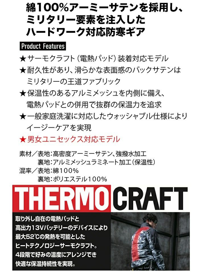 他の画像を見る 綿100%アーミーサテンを採用し、ミリタリー要素を注入したハードワーク対応防寒ギア。 バートル 上下セット 防寒ジャケット(大型フード付)カーゴパンツ 8210+8212 長袖 サーモクラフト 男女兼用 メンズ レディース ブルゾン ジャンパー ズボン 作業服 作業着 BURTLE 秋冬 本体価格 ¥ 12,540 税込 在庫切れ 詳細を見る お気に入りに登録する