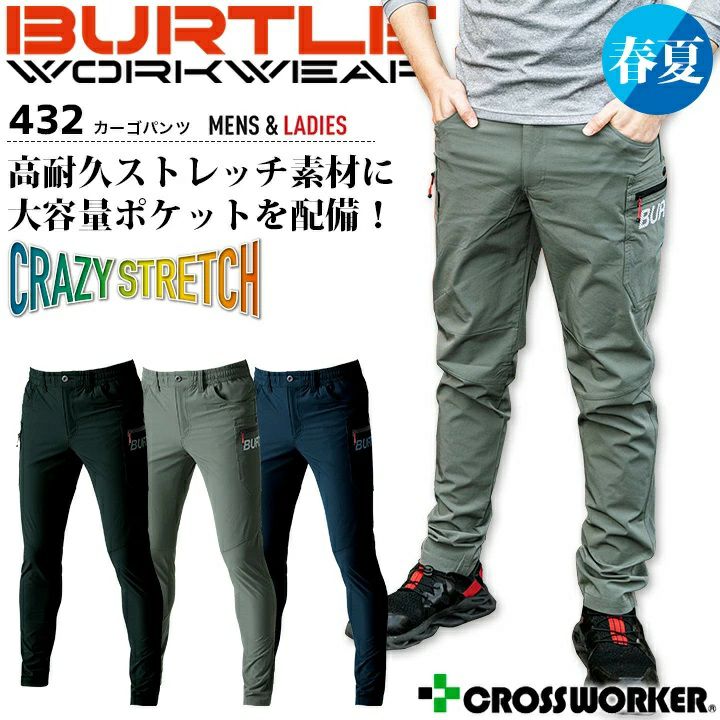バートル カーゴパンツ 432 春夏 男女兼用 メンズ レディース ズボン ストレッチ UVカット 吸水速乾 作業服 作業着 BURTLE かっこいい おしゃれ 人気