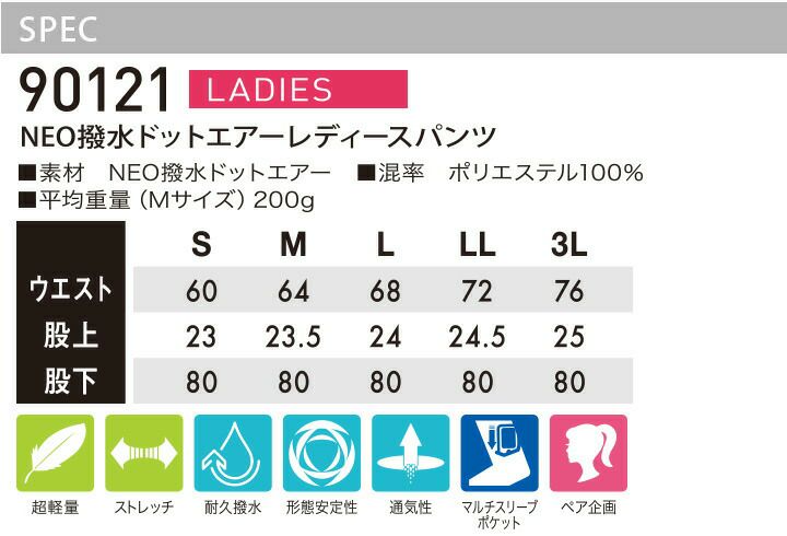 レディースパンツ 90121 NEO撥水ドットエアー TS-DESIGN TSデザイン スーツ ワークウェア フォーマル ストレッチ 耐久 撥水 軽量 形態安定性 ズボン スラックス 女性用 作業着 作業服 制服 ユニフォーム 藤和【S-3L】