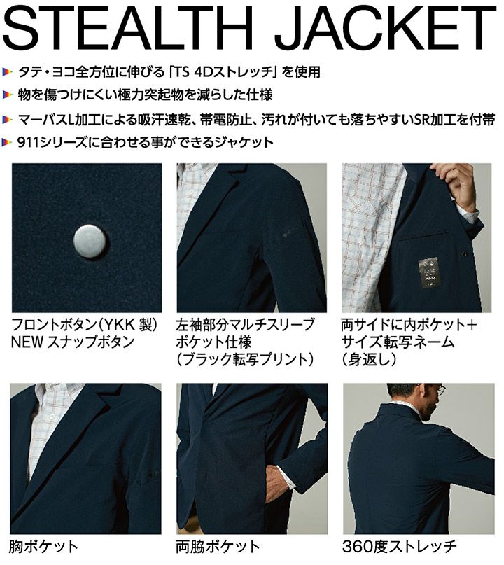 メンズジャケット NEO撥水ドットエアーステルス 9036 TS-DESIGN TSデザイン ストレッチ 耐久 撥水 軽量 形態安定性 作業着 作業服 藤和【S-3L】