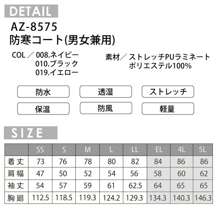 上着のみ 冷凍庫用 防寒着 防水防寒 防寒服 コート アイトス 8575 ユニセックス メンズ レディース 男女兼用 ブラック ネイビー イエロー 極寒対策 -60℃ Aitoz 小さいサイズ 大きいサイズ 【SS-5L】