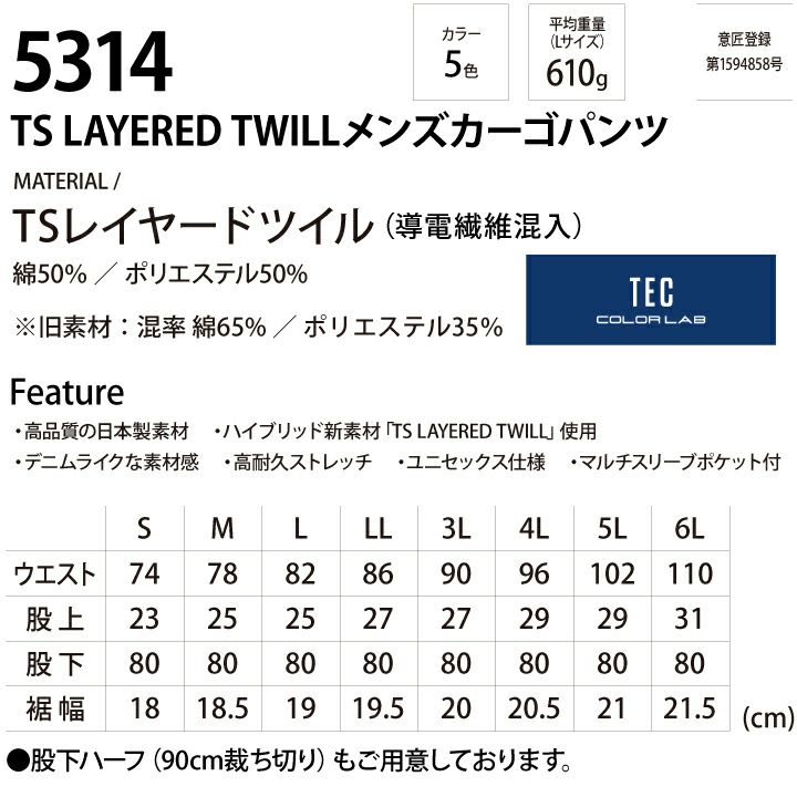 他の画像を見る 高耐久ストレッチ デニムライクな風合い 年間 オールシーズン TS DESIGN メンズカーゴパンツ 5314 ズボン 作業着 作業服 藤和 本体価格 ¥ 5,500 税込 カートに入れる お気に入りに登録する