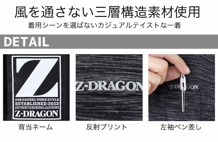 他の画像を見る 風を通さない三層構造素材使用。着用シーンを選ばないカジュアルテイストな一着。 Z-DRAGON 防風ストレッチパーカー 78020 ストレッチ 反射【秋冬】ブルゾン ジャケット アウター 作業服 作業着 自重堂 送料無料 本体価格 ¥ 3,300 税込 カートに入れる お気に入りに登録する