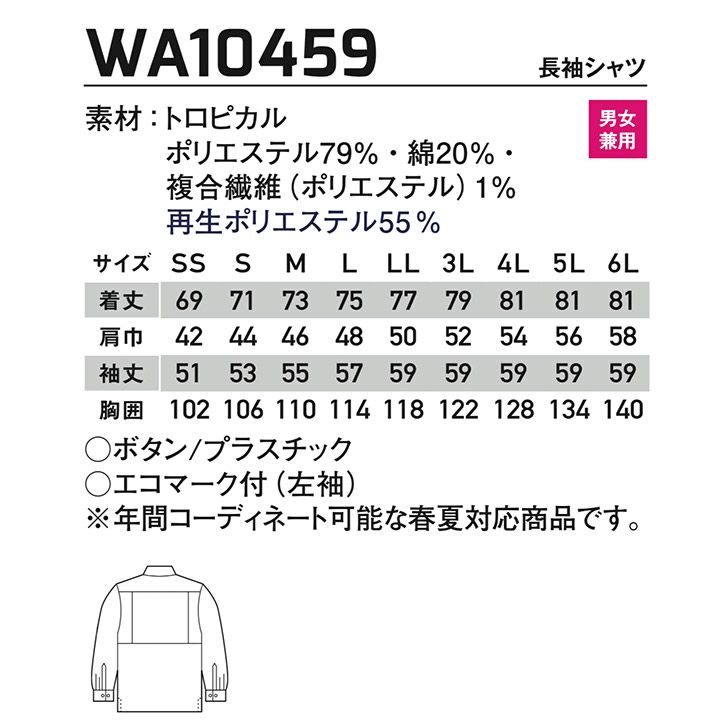 他の画像を見る オールシーズン対応、男女兼用長袖シャツ。 長袖シャツ WA10459 メンズ レディース 男女兼用 オールシーズン 反射 作業服 作業着 サンエス SUN-S 本体価格 ¥ 3,850 税込 カートに入れる お気に入りに登録する