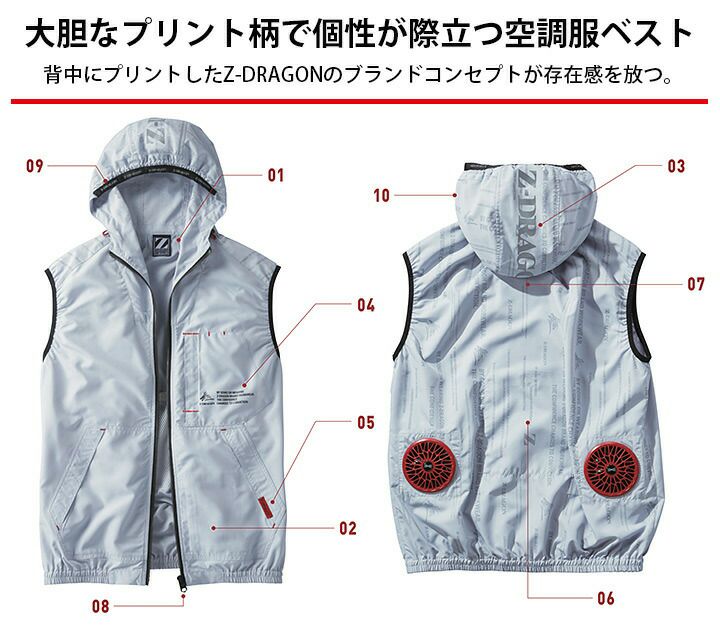 他の画像を見る 大胆なプリント柄で個性が際立つ空調服ベスト 空調服 ベスト フード付き 服のみ Z-DRAGON 74250 春夏 アウトドア スポーツ ファン付き作業服 作業着 熱中症対策 自重堂 本体価格 ¥ 3,850 税込 カートに入れる お気に入りに登録する