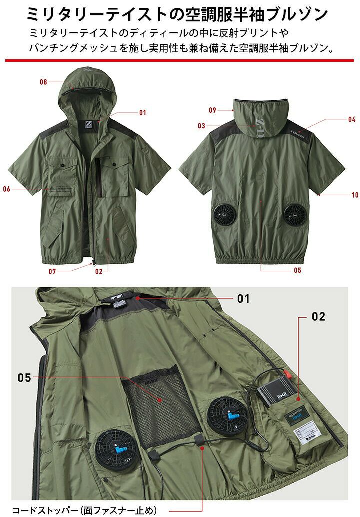 他の画像を見る ミリタリーテイストの空調服半袖ブルゾン 空調服 半袖ブルゾン フード付き 服のみ Z-DRAGON 74260 春夏 アウトドア スポーツ ファン付き作業服 作業着 ジャケット 熱中症対策 自重堂 ジードラゴン おしゃれ かっこいい 本体価格 ¥ 4,600 税込 カートに入れる お気に入りに登録する