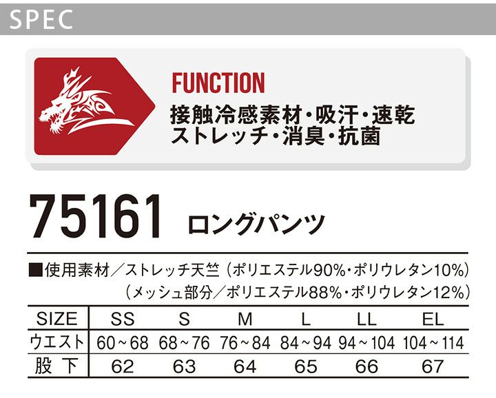 他の画像を見る 夏に最適な通気性の高いメッシュを使用。 【メール便送料無料】Z-DRAGON ロングパンツ 75161【春夏】男性用 メンズ コンプレッション ズボン ストレッチ 接触冷感 吸汗 速乾 消臭 抗菌 カモフラ 作業服 作業着 スポーツ インナーパンツ 自重堂【EL】 本体価格 ¥ 1,450 税込 カートに入れる お気に入りに登録する
