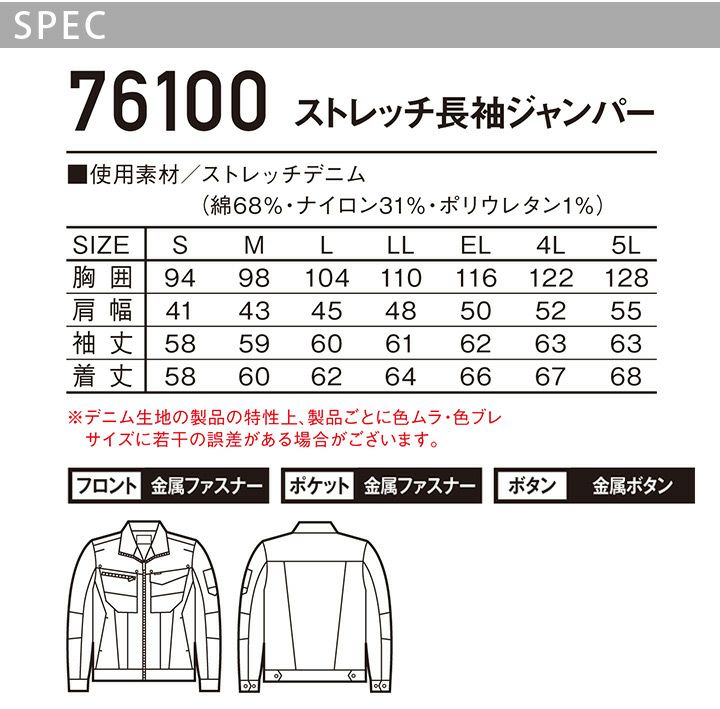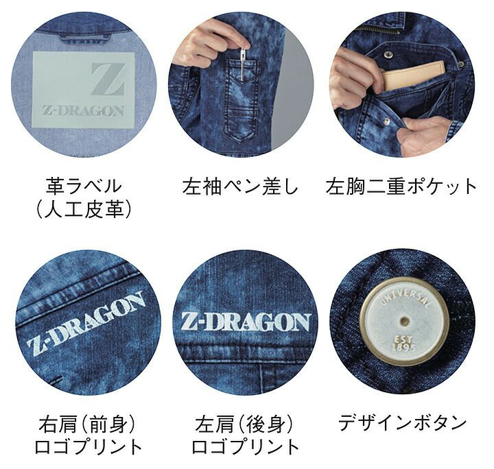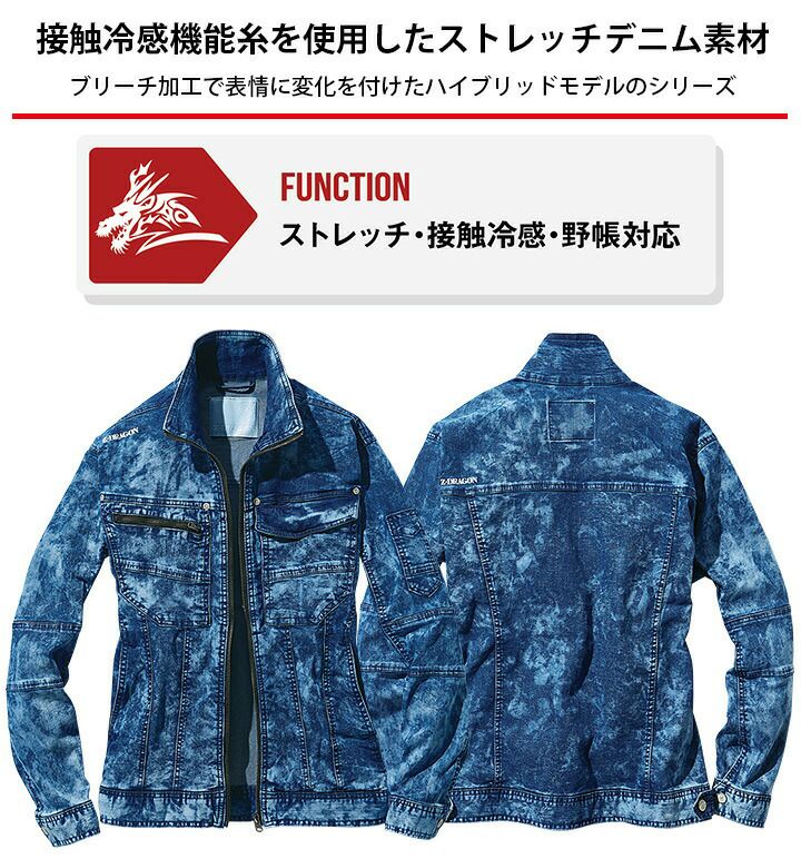 他の画像を見る 接触冷感機能糸を使用したストレッチデニム素材。 Z-DRAGON ストレッチ長袖ジャンパー 76100【春夏】デニム メンズ Gジャン ジャケット ブルゾン 接触冷感 自重堂 作業服 作業着 かっこいい おしゃれ【S-LL】 本体価格 ¥ 4,499 税込 カートに入れる お気に入りに登録する