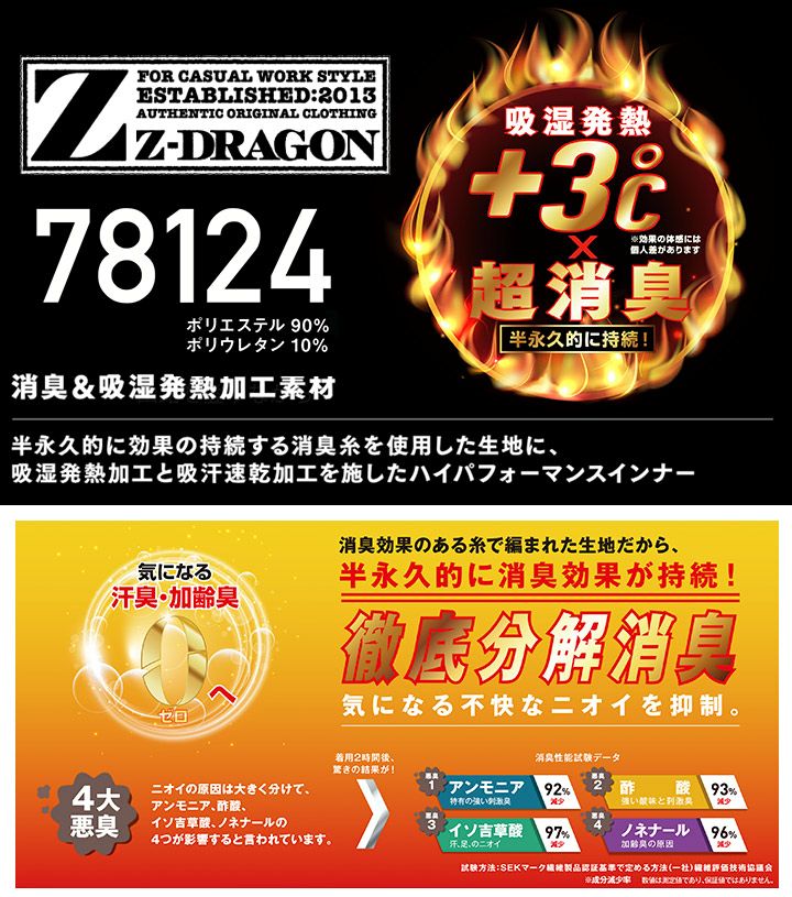 他の画像を見る 半永久的に消臭効果が持続!徹底分解消臭。冬用インナーウェア 冬用 長袖インナーウェア Z-DRAGON 78124 保温性 ハイネック ロングスリーブ コンプレッション ストレッチ カモフラ 消臭 吸汗速乾 吸湿 発熱 裏起毛 メンズ 男性用 スポーツ アンダーシャツ 作業着 作業服 自重堂【メール便送料無料】 本体価格 ¥ 1,738 税込 カートに入れる お気に入りに登録する