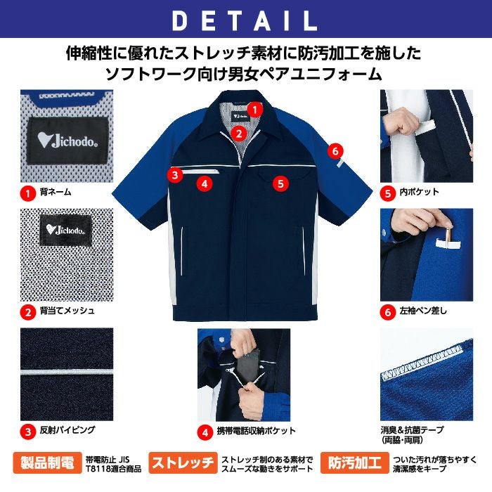 他の画像を見る 伸縮性に優れたストレッチ&防汚素材。ソフトワーク向け男女ペアユニフォーム 自重堂 製品制電 ストレッチ半袖ジャンパー 86810 男女兼用【春夏】ジャケット 作業着 作業服 ユニフォーム 本体価格 ¥ 4,345 税込 カートに入れる お気に入りに登録する
