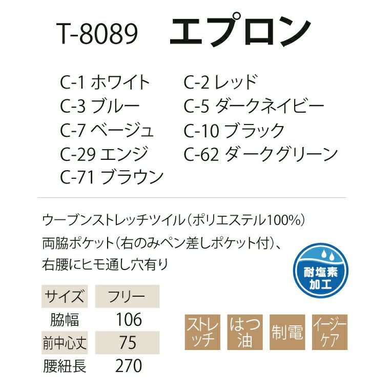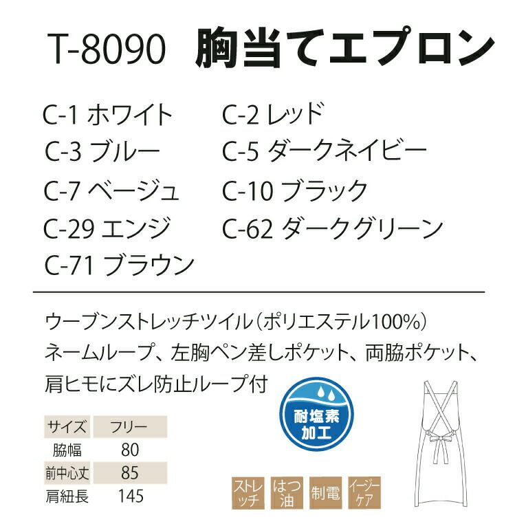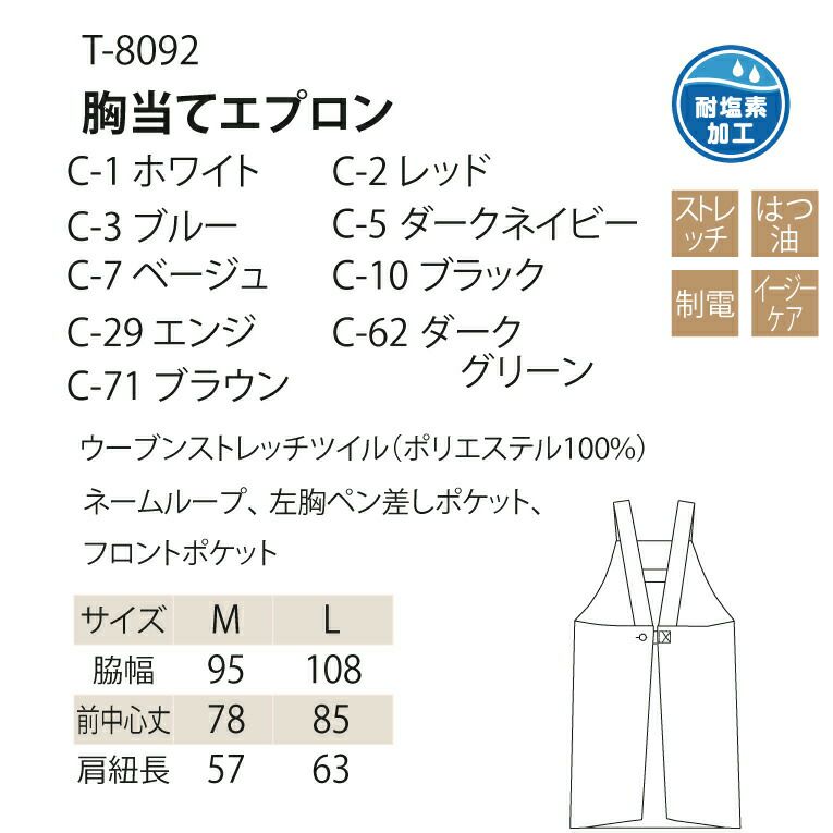 他の画像を見る 漂白剤・汚れ・静電気に強いイージーケアの胸当て首かけ型エプロン。 胸当て首かけ型エプロン T-8091 T8091 チトセ arbe アルべ メンズ レディース 男女兼用 ストレッチ素材 はつ油加工 制電加工 耐塩素 飲食店 カフェ レストラン サービス キッチン 厨房 スタッフ サービス業 ユニフォーム 制服 作業着 作業服_メール便送料無料※代引不可 本体価格 ¥ 3,355 税込 カートに入れる お気に入りに登録する