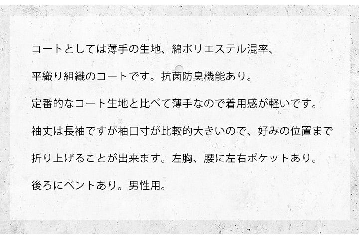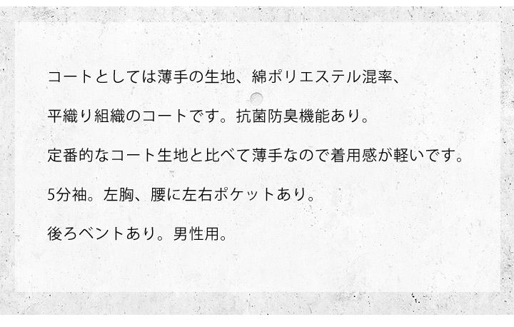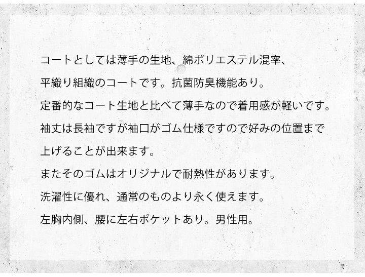 他の画像を見る 定番調理用コート。抗菌防臭加工生地使用。 セブンユニフォーム AA320 コート 長袖 男性用 メンズ 抗菌防臭 レストラン 調理用 厨房 白衣 飲食店 本体価格 ¥ 3,050 税込 カートに入れる お気に入りに登録する