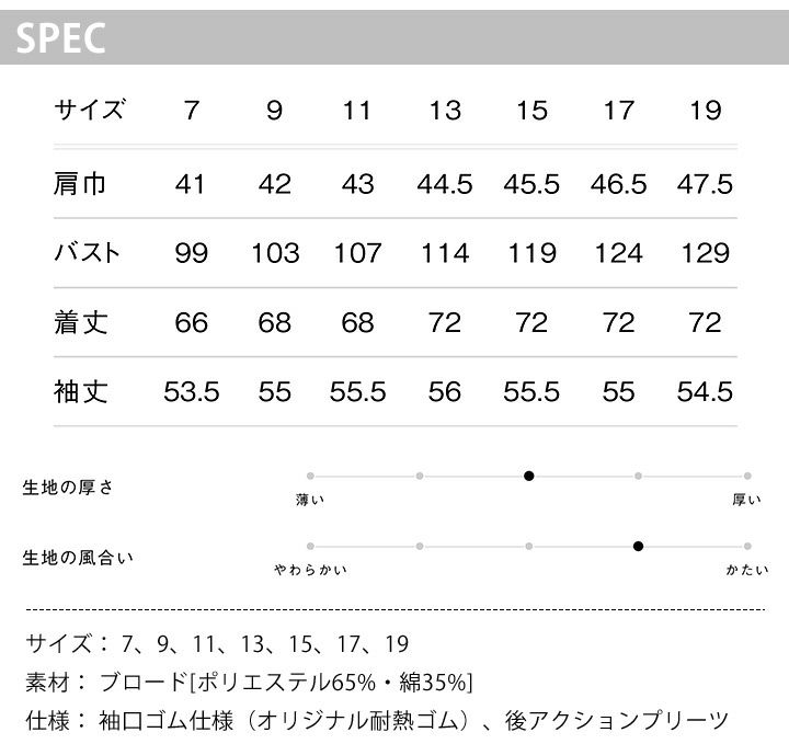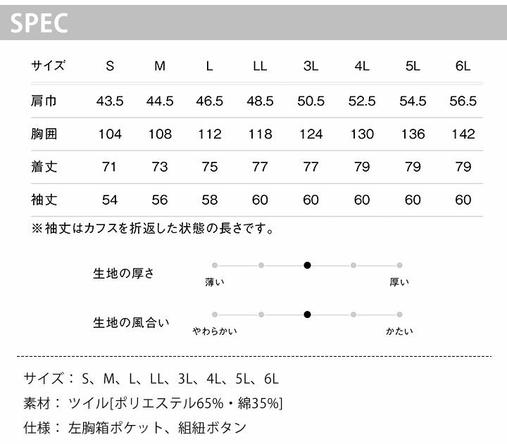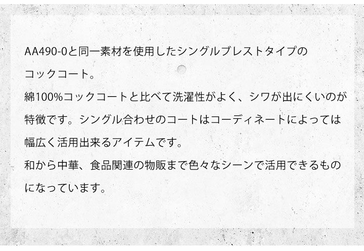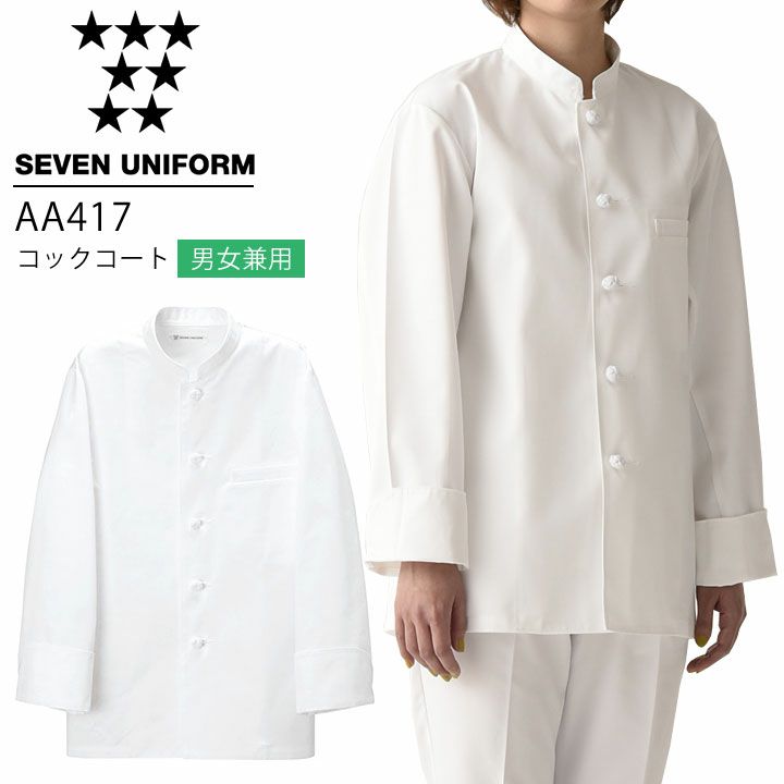 他の画像を見る コックコートシングル長袖。T65/C35ツイル素材。耐久性。 セブンユニフォーム AA417 コックコート 長袖 シングル 男女兼用 メンズ レディース レストラン 調理用 厨房 白衣 飲食店 本体価格 ¥ 3,450 税込 カートに入れる お気に入りに登録する