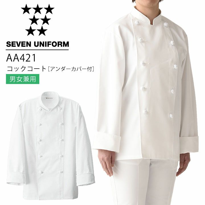 他の画像を見る 袖アンダーカバー付き(体毛落下防止)長袖コックコート。 セブンユニフォーム AA421 コックコート(アンダーカバー付き) 長袖 ダブル 男女兼用 メンズ レディース レストラン 調理用 厨房 白衣 飲食店 本体価格 ¥ 3,700 税込 カートに入れる お気に入りに登録する