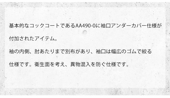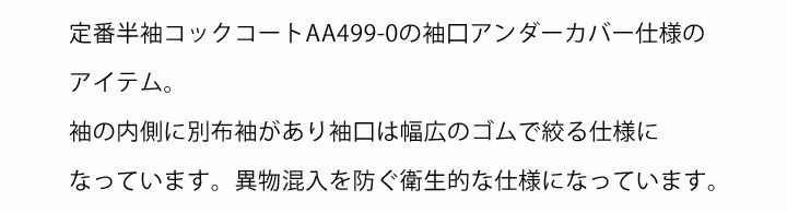他の画像を見る 袖アンダーカバー付き(体毛落下防止)半袖コックコート。 セブンユニフォーム AA422 コックコート(アンダーカバー付き) 半袖 ダブル 男女兼用 メンズ レディース レストラン 調理用 厨房 白衣 飲食店 本体価格 ¥ 3,600 税込 カートに入れる お気に入りに登録する