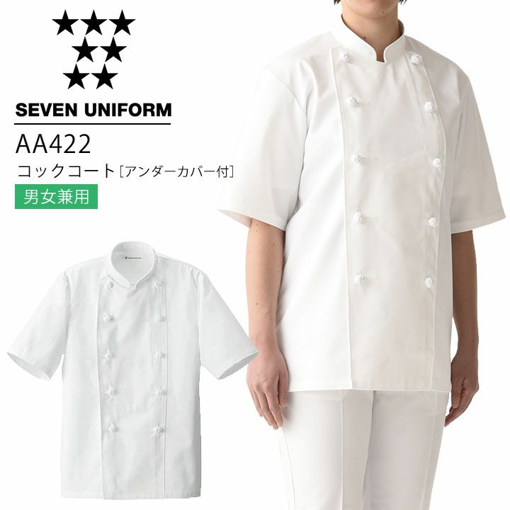 他の画像を見る コックコートシングル半袖。T65/C35ツイル素材。耐久性 セブンユニフォーム AA418 コックコート 半袖 シングル 男女兼用 メンズ レディース レストラン 調理用 厨房 白衣 飲食店 本体価格 ¥ 3,300 税込 カートに入れる お気に入りに登録する