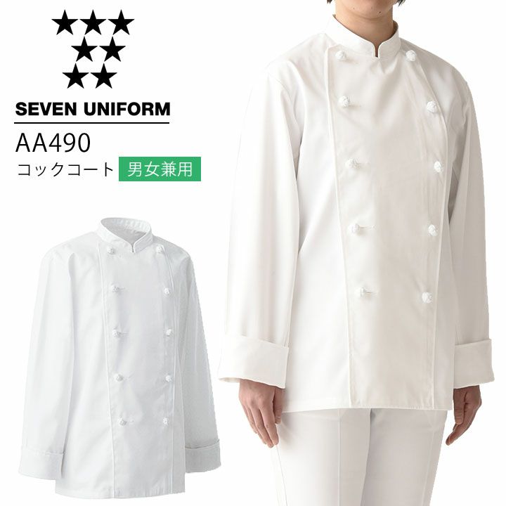 他の画像を見る 定番長袖コックコート。ポリエステル・綿混紡のオリジナル素材を使用。 セブンユニフォーム AA490 コックコート 長袖 ダブル 男女兼用 メンズ レディース レストラン 調理用 厨房 白衣 飲食店 本体価格 ¥ 3,300 税込 カートに入れる お気に入りに登録する