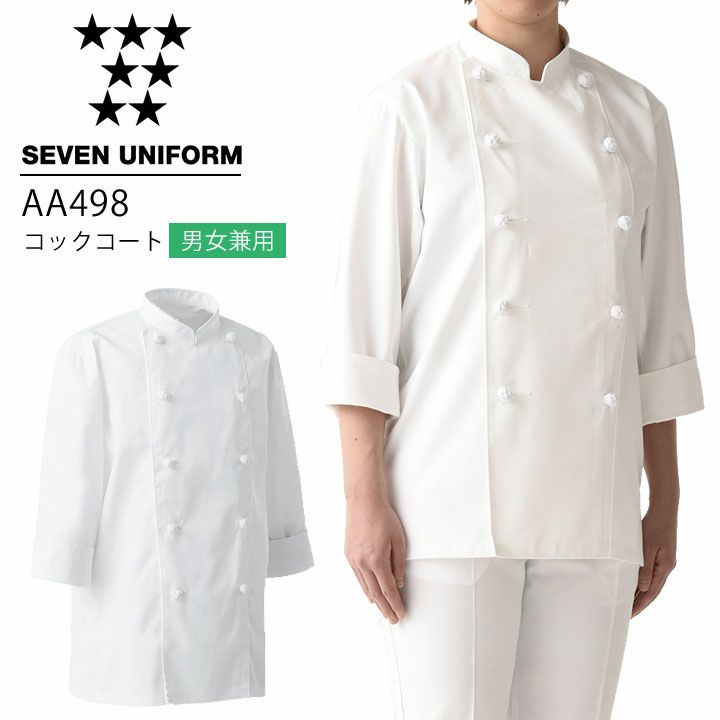 他の画像を見る 定番七部袖コックコート。ポリエステル・綿混紡のオリジナル素材を使用。 セブンユニフォーム AA498 コックコート 七分袖 ダブル 男女兼用 メンズ レディース レストラン 調理用 厨房 白衣 飲食店 本体価格 ¥ 3,300 税込 カートに入れる お気に入りに登録する
