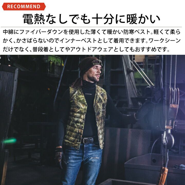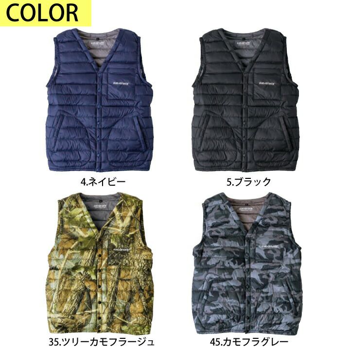 他の画像を見る 中綿にファイバーダウンを使用した薄く温かい軽量防寒ウェア 【送料無料】イーブンリバー ファイバーダウンベスト R125 R-125 軽量 ダウン 防寒 ベスト Vネック インナー 作業着 作業服 普段着 アウトドア EVENRIVER 本体価格 ¥ 3,960 税込 カートに入れる お気に入りに登録する