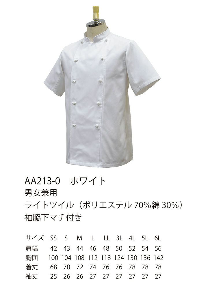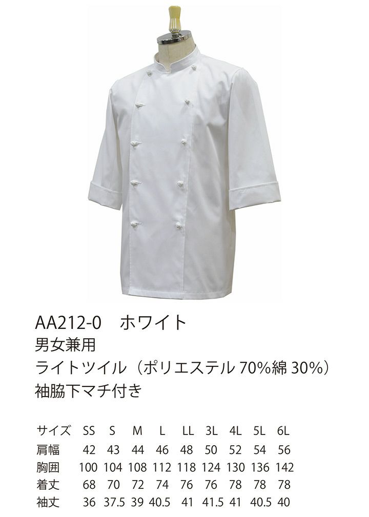 他の画像を見る 「できるだけ涼しいコックコートが欲しい」というリアルな現場の声から生まれた「涼感コックコート」綿100%の約1.6倍の通気量、約-1.06℃の温度差を実現。 セブンユニフォーム 半袖コックコート AA213-0 男女兼用 軽量 通気性 防透性 制電 厨房 キッチン 飲食業 レストラン 白衣 SEVEN UNIFORM【3L-6L】 本体価格 ¥ 3,630 税込 カートに入れる お気に入りに登録する