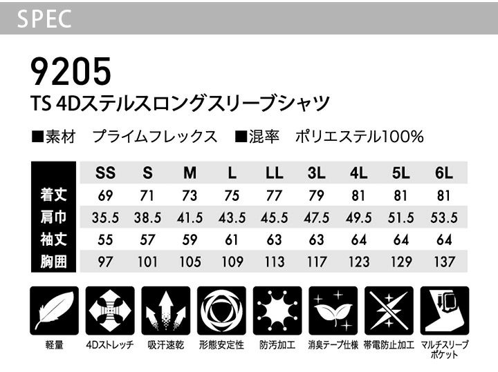 他の画像を見る 布帛シャツに無いダイナミックなストレッチ TS-DESIGN 長袖シャツ TS 4D ステルスロングスリーブシャツ 9205 男女兼用 スーツ ストレッチ フォーマル 作業服 作業着 藤和【3L-4L】 本体価格 ¥ 5,500 税込 カートに入れる お気に入りに登録する