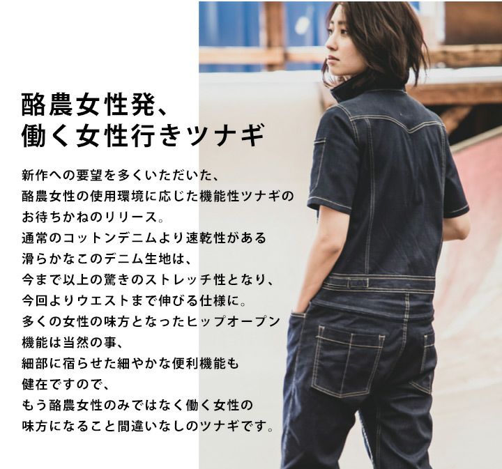 他の画像を見る 酪農女性発、働く女性行きツナギ 女性用 半袖つなぎ GE-655 GE655 グレースエンジニアーズ デアリーウーマンツナギ デニム ストレッチ レディース エスケープロダクト ヒップオープン 腰ファスナー トイレがしやすい 作業服 作業着 動きやすい かわいい おしゃれ 酪農 農作業 畑仕事 キャンプ ガーデニング 本体価格 ¥ 7,579 税込 カートに入れる お気に入りに登録する