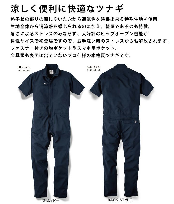 他の画像を見る 涼しく便利に快適なツナギ 半袖つなぎ 春夏 男女兼用 GE-675 グレースエンジニアーズ 涼しい グリッドエアーツナギ エスケープロダクト シンプル 作業服 作業着 軽量 動きやすい ヒップオープン 腰ファスナー トイレが楽 かわいい おしゃれ 自動車整備士 農作業 畑仕事 金具が表に出ない 本体価格 ¥ 7,370 税込 カートに入れる お気に入りに登録する
