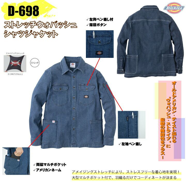 他の画像を見る ”ウォバッシュ・ストライプ”に最新の機能性をプラス! ディッキーズ デニム ジャケット Dickies D-698 ストレッチ シャツジャケット シャツ ジャンパー 作業着 作業服 コーコス信岡 オールシーズン ウォバッシュ アメリカン ストライプ 男女兼用 ユニセックス 小さいサイズ 大きいサイズ 【S-3XL】 本体価格 ¥ 5,480 税込 カートに入れる お気に入りに登録する