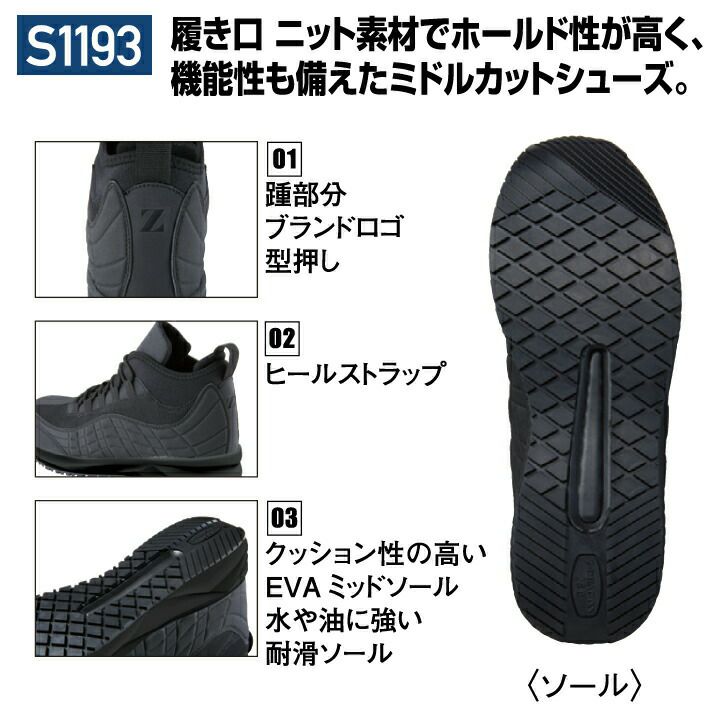 他の画像を見る 履き口ニット素材でホールド性が高いミドルカットシューズ。 Z-DRAGON セーフティシューズ S1193 ミドルカット 安全靴 JSAA A種認定品 プロスニーカー 耐滑 衝撃吸収 ニット 自重堂 作業靴 本体価格 ¥ 2,970 税込 カートに入れる お気に入りに登録する