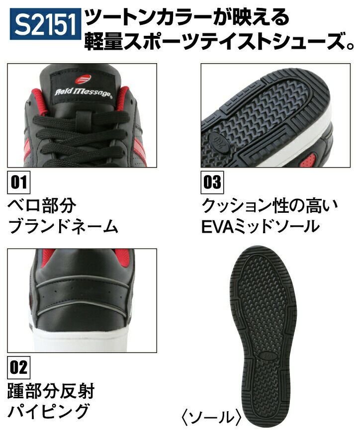 他の画像を見る ツートンカラーが映える軽量スポーツテイストシューズ。 セーフティシューズ S2151 安全靴 JSAA B種認定品 プロスニーカー 軽量 男女ペア メンズ レディース フィールドメッセージ 自重堂 作業靴 紐タイプ 樹脂芯 本体価格 ¥ 3,025 税込 カートに入れる お気に入りに登録する
