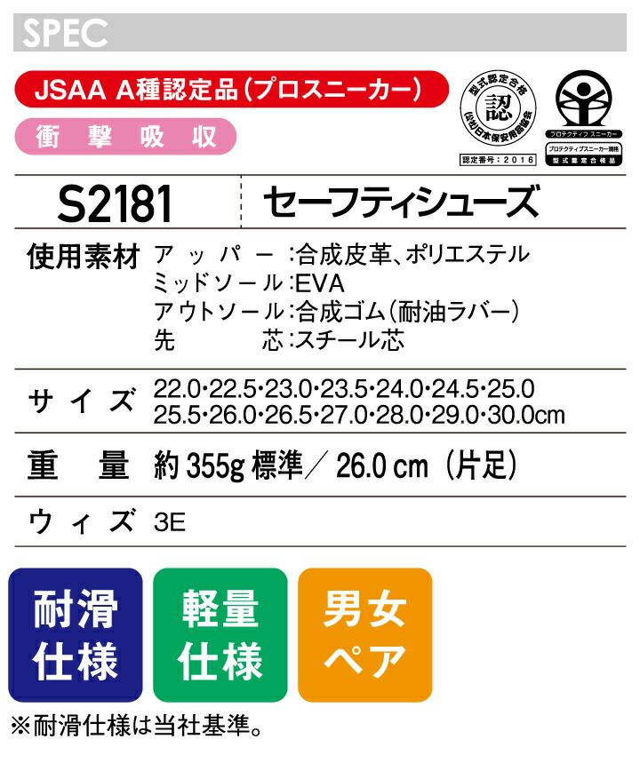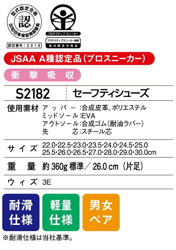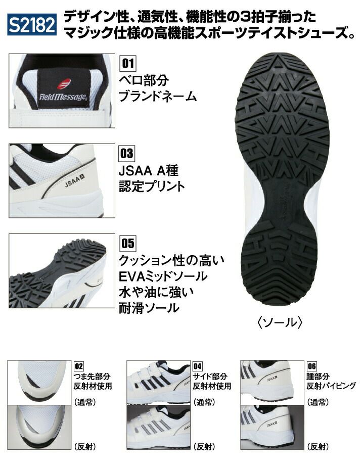 他の画像を見る マジック仕様の高機能セーフティシューズ。 安全靴 セーフティシューズ S2182 JSAA A種認定品 プロスニーカー 衝撃吸収 反射材 耐滑 軽量 男女ペア メンズ レディース フィールドメッセージ 自重堂 作業靴 マジックテープ 本体価格 ¥ 2,860 税込 カートに入れる お気に入りに登録する